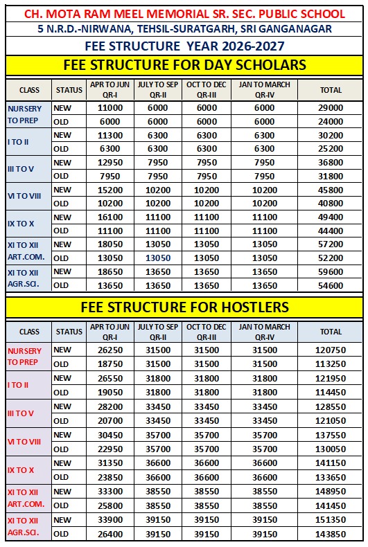 The fee structure of the school is designed to be fair, transparent, and in accordance with the guidelines prescribed by the relevant educational authorities. Fees are determined based on the class level and include tuition fees, development charges, and other applicable charges. The school ensures that the fee remains reasonable while maintaining high standards of education and facilities. Parents are requested to pay the fees within the stipulated time to avoid any inconvenience. Detailed information regarding the fee schedule, payment modes, and due dates is available at the school office and on the official website. Concessions, if any, are granted as per school policies and applicable regulations.